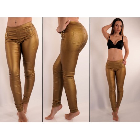 Eine ganz besonders auffällige Hose für Wetlook- und shiny-Liebhaber. Wetlook Jeans Gold schimmernd.